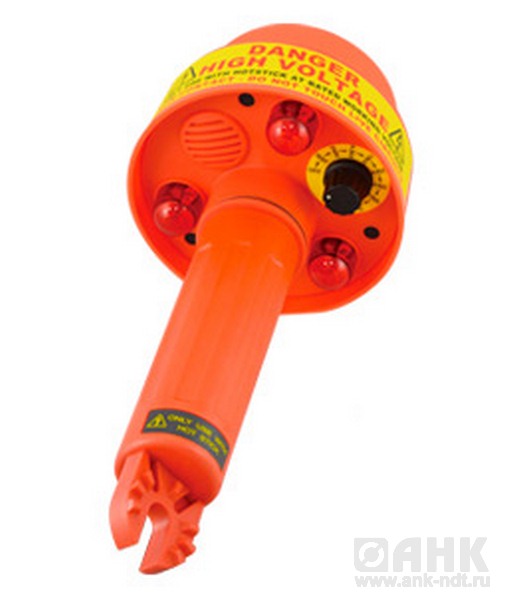 Бесконтактный индикатор переменного напряжения в цепях 240 В/ 4,2 кВ/ 15 кВ/ 25 кВ/ 35 кВ/ 69 кВ/ 115 кВ/ 230 кВ + специальные диапазоны по запросу; световая и звуковая индикация; индикатор самоконтроля; вибро- и ударопрочное исполнение; минус 10…50 °С, отн. влажность до 85 % (40 °С); 229 х 96 мм; питание 1,5 В х 3; масса 600 г