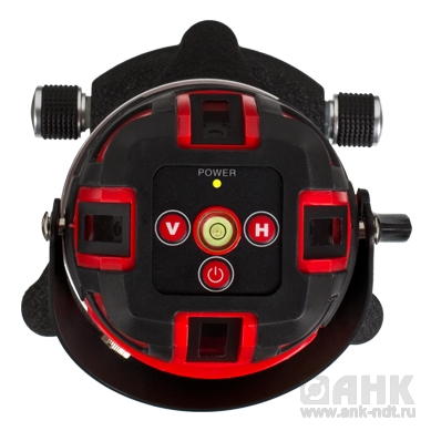 Круглый пузырьковый уровень в крышке прибора обладает собственной подсветкой, что позволит работать в полумраке, когда лазерные лучи лучше видны.
