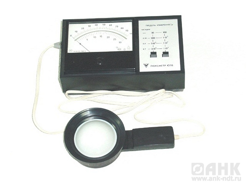 • Люксметр Ю116 (измеритель освещенности) ОПИСАНИЕ Люксметр Ю116 предназначен для измерения освещенности, создаваемой лампами накаливания и естественным светом, источники которого расположены произвольно относительно светоприемника люксметра. Переносной фотоэлектрический люксметр общепромышленного назначения применяется для контроля освещенности в промышленности, в сельском хозяйстве, на транспорте и других отраслях народного хозяйства, а также для исследований, проводимых в научных лабораториях..