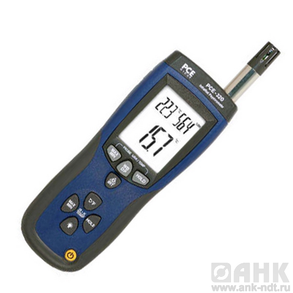 PCE 320 универсальный измерительный прибор для определения значения влажности, температуры, точки росы, температуры поверхности с помощью контактного и бесконтактного датчика температуры. Прибор оснащен встроенным пирометром. Прибор имеет встроенный блок записи значений, может подключаться к компьютеру и имеет специальное программное обеспечение для обработки результатов.