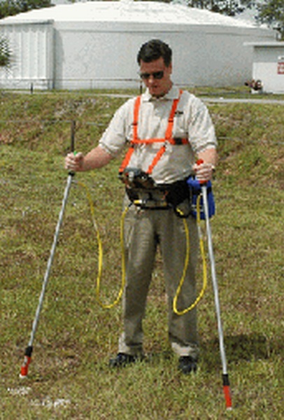 Для DCVG-обследования требуются два зонда (один с красной ручкой, другой – с зеленой ручкой), поскольку для таких обследований требуется измерение разности потенциалов между двумя измерительными позициями на поверхности почвы над трубопроводом.