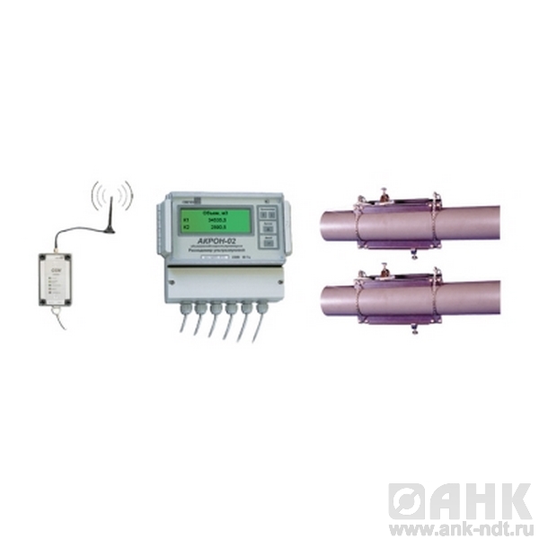Двухканальный ультразвуковой расходомер АКРОН-02 предназначен для измерения и учета объемного расхода и суммарного количества звукопроводящих жидкостей в том числе сточных вод, протекающих в двух напорных трубопроводах одновременно. В состав двухканального ультразвукового расходомера АКРОН-02 входят электронный блок, а так же первичный преобразователь ПП-1, включающий в себя два ультразвуковых излучателя-приемника и устройство для их крепления на трубе.
