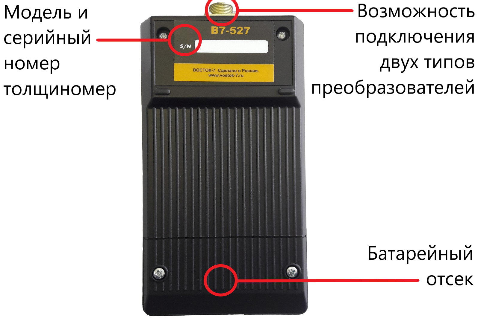 • Электронный блок толщиномера работает только с одним типом преобразователя по выбору покупателя при заказе прибора.