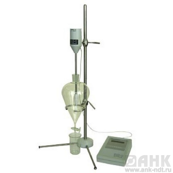 Экстрактор ЭЛ-1 состоит из штатива, воронки делительной, держателя поворотного, блока двигателя с мешалкой и блока управления.