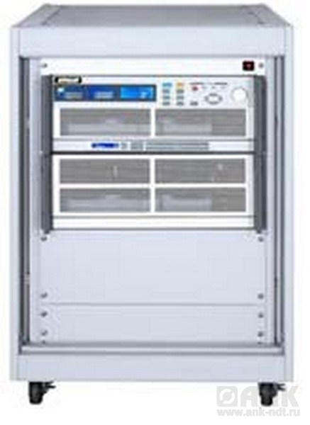 • дискр. уст. параметров (набор на клавиатуре или в пошаговом режиме); режимы защиты: от перегрева (OTP), перегрузки по току (ОСР), по напряжению (OVP), по мощности (OPP); внутренняя память 150 ячеек (профили состояний). Интерфейс (опции): RS232, LAN, GPIB, USB (только взамен; 1 слот расширения), масса 47 кг. В комплекте подкатной шкаф 15U, 34 кг
