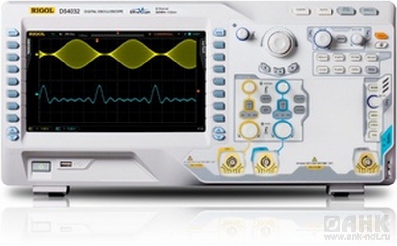 Цифровой осциллограф RIGOL DS4032 – высококачественный двухканальный осциллограф нового поколения (350 МГц). Этот компактный легкий цифровой осциллограф обеспечивает исключительно точный просмотр осциллограмм и измерения. RIGOL DS4032 обеспечивает захват 110 000 осциллограмм в секунду, что позволяет пользователям производить мгновенный захват сигнала и аномалий более быстро для ускорения анализа сигнала и поиска неисправностей. Удобный 9-дюймовый цветной жидкокристаллический дисплей осциллографа обеспечивает яркое и четкое отображение осциллограмм.