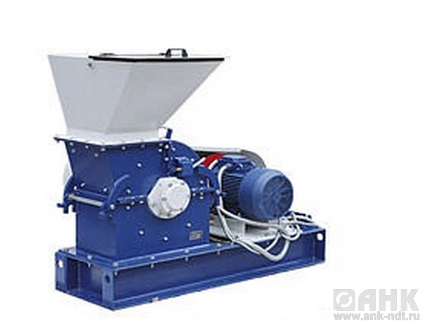 В состав дробилки входят: загрузочный бункер, две откидных крышки, основание,  ротор, рама и электродвигатель. Камера дробления образована внутренней поверхностью откидных крышек, основания и разгрузочной решеткой. Внутри камеры дробления смонтирован ротор. Он представляет собой вал, на котором установлены три диска. В отверстия, выполненные по периферии дисков, вставлены шесть осей, на которых шарнирно подвешены плоские молотки, изготовленные  из закаленной стали.
