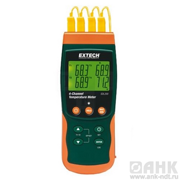 4-канальный термометр Extech SDL200 с функцией регистрации записей до 20Мб на карте SD (2Гб), программируемая пользователем частота измерений от 1 до 3600 секунд, регистрация показаний с временными отметками и датами реального времени.