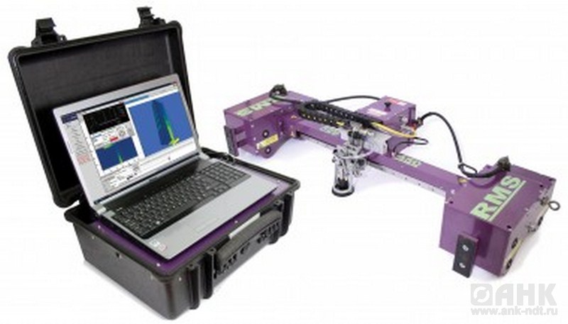 RMS2 – (РМС) высокоскоростной коррозионный сканер (500мм/сек) для контроля толщины стенок с разрешением 2мм и построением С- скана. Ультразвуковой приемо-передатчик в комбинации с 50МГц АЦП дают возможность системе проводить сканирование со скоростью 500мм в секунду. Управляющее ПО было специально разработано для компьютеров последнего поколения с двуядерными процессорами под управлением Windows 10. ПО для сбора данных, анализа и формирования отчета поставляется как комбинированный набор и автоматически сохраняет А-скан, В-скан, С-скан и значения измерений толщины в процессе сканирования со скоростью 500 мм в секунду с разрешением 2х2 мм.