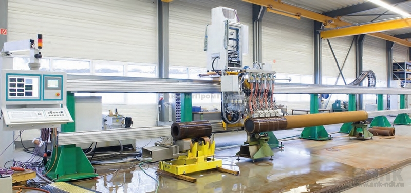 Возможно решение разнообразных задач контроля. Трубы с продольным сварным швом (сваренные методом сопротивления) проверяют на наличие рас- слоений, т. e. их контролируют при помощи прямых преобразователей. При помощи данной системы можно также измерять толщину стенки. Бесшовные трубы проверяют обычно на наличие продольных дефектов. Подача ультразвука осуществляется по часовой стрелке, либо против часовой стрелки. Некоторые спецификации запрашивают обнаружение поперечных дефектов. В данном случае подача ультразвука осуществляется в обоих направлениях.