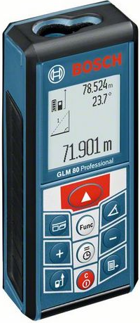 В сравнении с предыдущей моделью серии BOSCH GLM 80 Professional обладает увеличенной дальностью — до 80 м, и оснащён встроенным высокоточным датчиком наклона с погрешностью не более ±0,2°. Используя прибор в качестве угломерного инструмента, вы можете контролировать правильность монтажа наклонных конструкций.