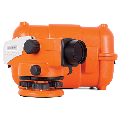 Стандартная комплектация: оптический нивелир RGK N-38, нитяной отвес, юстировочный набор (шестигранный ключ, шпилька), транспортный кейс.