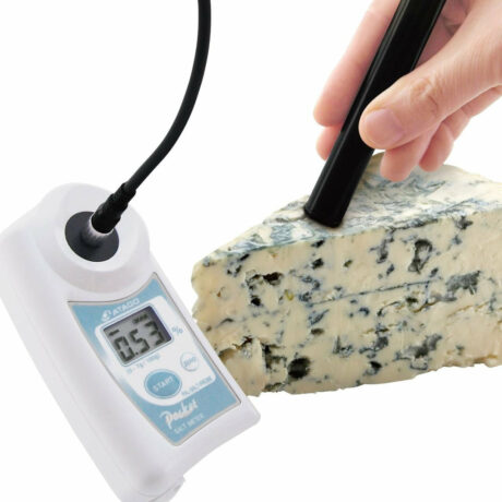 • Цифровой ручной солемер с выносным датчиком PAL-SALT PROBE, разработан для измерения концентрации соли кондуктометрическим методом в таких продуктах, как мясо, рыба, сыры и другие. Оснащен функцией автоматической температурной компенсации и классом защиты IP65. Для калибровки или проверки точности работы солемера Вы можете приобрести ГСО «NaCl» номиналом 2,5%. Поверка солемера PAL-SALT Probe осуществляется в аккредитованной лаборатории АНК и занимает от 1 до 5 дней.