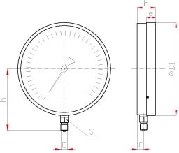 - Диапазон показаний давлений: 0…0,25 / 0,4 / 0,6 / 1 / 1,6 / 2,5 / 4 / 6 МПа